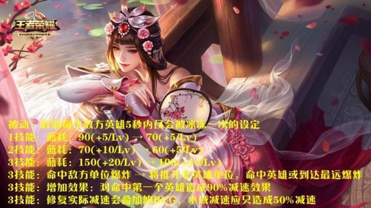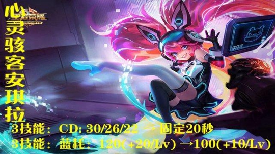 这名中单英雄的爆发伤害是非常的高,一套技能可以秒杀一名坦克英雄,但是主要伤害来自于三技能的伤害量,这一次增强之后,减少了她三技能的蓝耗,同时将三技能的冷却时间改为固定20秒,这一改动减少了她的技能冷却,增加了她在对战中的伤害量。
