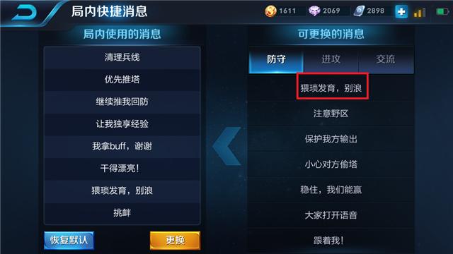 如果是顺风均势局,朕哥就点“猥琐发育,别浪!”让队友谨慎一点,不要一浪再浪,送掉优势,被顺风翻盘是最难受的了!