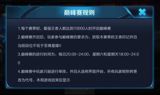 在王者荣耀S11赛季开启之后,天美推出了全新的排位机制——王者荣耀巅峰赛,听名字就知道,这是专为高端玩家准备的比赛殿堂,进入门槛就是必须在本赛季拿到王者印记并且段位不得低于星耀2。