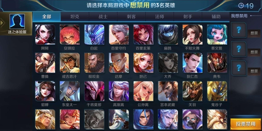 王者荣耀体验服最近新出了类似绝地求生生存模式,该模式天生就禁黄忠、大乔及太乙真人三位英雄和两吸血大件装备噬神之书及泣血之刃,除此之外玩家还可以选择再禁三位英雄。