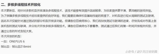为了保障多核多线程技术给玩家提供的良好体验,我们需要在确保机型基础性能的前提下,对机型进行较长周期的测试及联调,因此本次仅能针对通过测试的部分机型开放该功能。但请各位召唤师放心,我们将加快测试与联调的进度,尽快完成对市面上各类机型的测试与联调,并分批次开放多核多线程技术。请各位召唤师也不要着急,测试通过后我们将第一时间开放相关机型,并通过公告的形式告知大家。