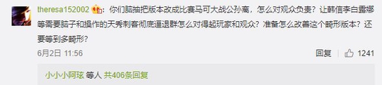 但是策划微博下的第一热评都被猴子和鲁班给占稳了,后羿攻速玩家表示不服,鲁班被加强过三次,一次被动改成百分比伤害,一次cd改短了,一次操作优化,三技能有视野。