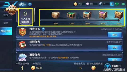 战队 :新增战队任务界面,类似每日任务,玩家可以更加便捷的查看自己每周的战队活跃度,同时在达到指定活跃度时可领取宝箱奖励!