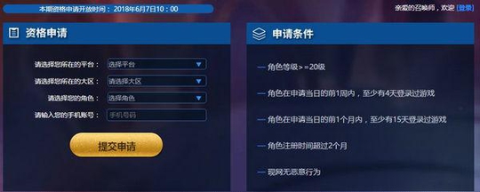 体验服[资格申请活动],将于2018年6月7日10:00开启资格申请,6月7日15:00开启抢号功能。