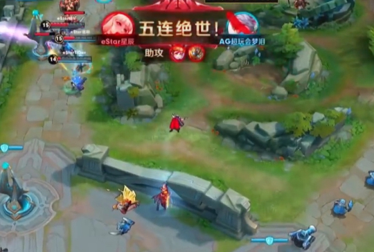 然后是星辰的五连绝世,星辰的公孙离,从河道处打到高地,连续拿到了AG超玩会五个人头。中间的各种秀也不用多说了,毕竟五连绝世是技术和运气缺一不可的。
