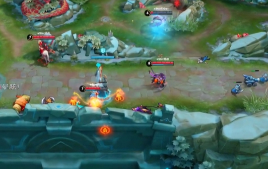 第一个是伪装的单人守水晶,当时estar只剩伪装一个人,而对面还有四个英雄加一个炮车,一般这种情况肯定就被一波了,但是伪装靠着自己的一技能和大招,强行击杀了对面的两个人,并且还把炮车给点掉了,成功的守下了这一波。