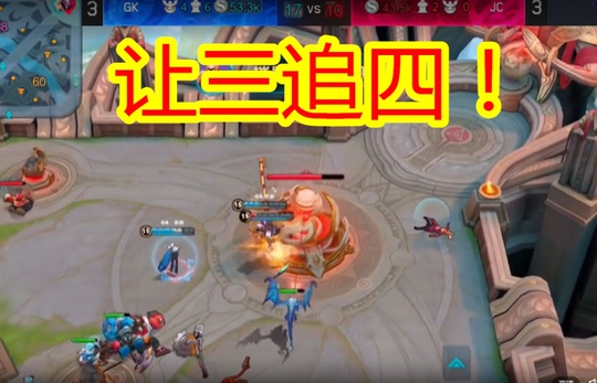 王者荣耀:让三追四,GK上演绝地大反击,JC无奈成为背景