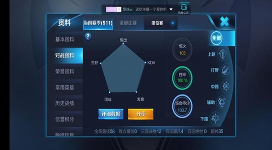 王者荣耀:排位连胜之后必连败?无敌中单主播103连胜直接上荣耀