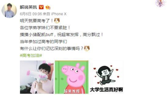 在这么重要的日子,KPL的职业选手、解说也为即将高考的小伙伴们加油打Call。