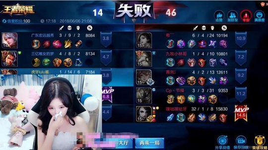 后面比赛终于结束了,打了17分钟,露露酱这边拿了14个人头,空伐拿了46个人头,其中阿轲是拿了32个人头数的,占了整支队伍的三分之二,而露露酱的武则天却死了14次,只拿了一个人头,就在此时撸撸酱做了一个让10万粉丝感到心慌的举动.