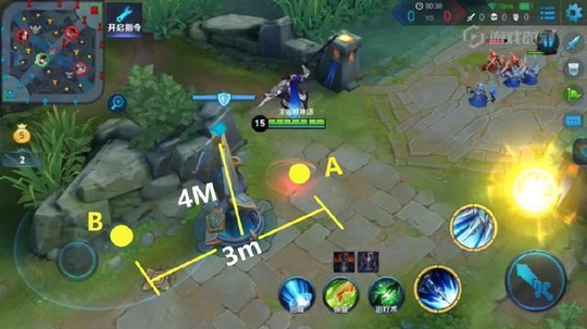 赵云的大招可以跳3M远,但是现在中间有了一个高4M的防御塔。问,此时想要从A点跳到B点的赵云,他能成功跳过去吗?如果能,要用多大的力才能成功越过防御塔达到B点
