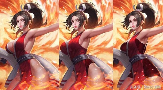 不知火舞的人气太高了,同人形象太多,根本无法做出对比。但我知道,王者荣耀中不知火舞的还原度是最低的,就冲着她的安全裤,也已经算不上是拳皇中的不知火舞了,更何况还曾经闹出过乌龙BUG,漏掉了不知火舞的SNK授权标记,玩家们差点以为因为不知火舞形象改动太大而被SNK收回了授权。其实,王者荣耀中的不知火舞,最早期的时候还是神还原的,但现在衣服越穿越多,早已不是昔日的不知火舞。