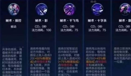 四技能:秘术散/秘术突。大招就是他的自保技能了。能清楚自身的负面效果,可以使本体原地消失,然后出现在范围内的另外一个敌方。