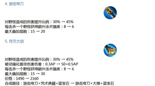 符文大剑:价格增高,伤害增高,法强增高,层数增高,性价比增高。