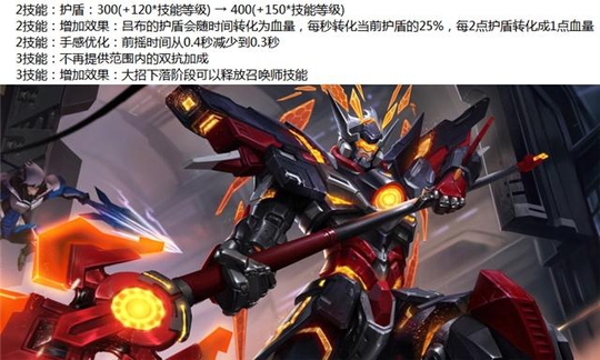 吕布增强:2技能护盾增高,护盾值会2:1转化为血量,大招移除双抗buff,但可以释放召唤师技能,大招+闪现是很完美的连招。