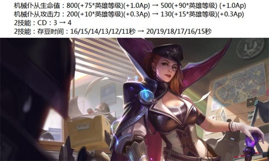 米莱狄削弱:存豆时间增长4秒(这个策划调皮了,存豆应该是指储存技能的CD增长了4秒),机器人的血量和攻击下调。上次米莱狄增强过2技能,一次可以召唤两个机器人。