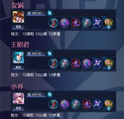 这三个法师的铭文和装备也都差不多。同样也带了调和这个性价比非常高的铭文,大家也可以试着来学习一下,当然辉月也是必不可少的。
