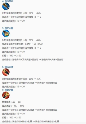 ③1级打野刀:对野怪造成的伤害提升比例:20% → 35%。2、3级打野刀:对野怪造成的伤害提升比例:30% → 45%