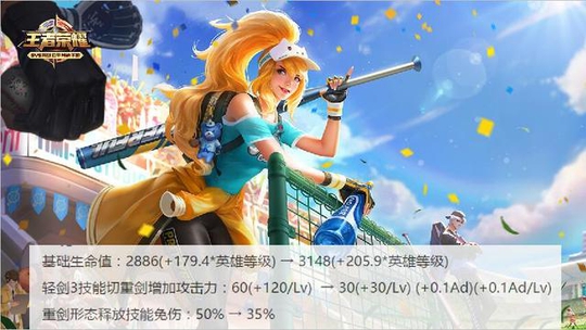 花木兰~木兰本次又被大削了...官方将木兰的生命值上调,但是大招轻剑切重剑增加的攻击力总的来说下调了不少,同时重剑行天下的免伤效果也降低了15%,看来又要有不少的老玩家因为木兰而退游?
