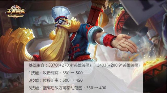老夫子~老夫子本次的调整也是被削,将其生命值上调了一些,但是技能的释放距离和位移距离统统削了一番,同时大招捆绑的距离反而增加,这让敌人有更大的活动范围!