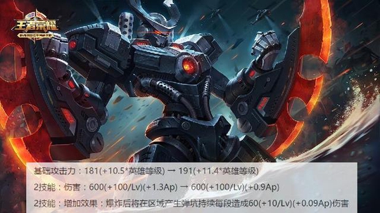 墨子~墨子本次算平衡性调整,基础的攻击力增强,但是二技能的Ap加成降低了不少,作为弥补墨子的二技能新增了一个弹坑,会造成持续伤害!