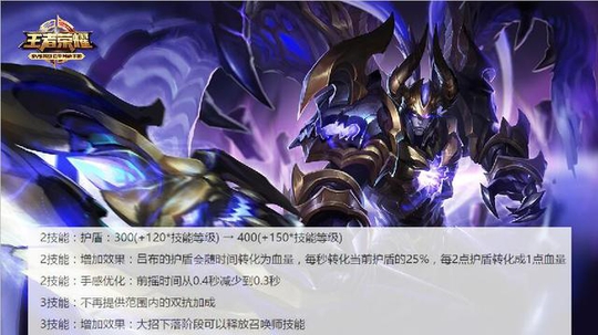 吕布~本次调整吕布确实是嘉庆了一波;二技能的弧度增加了不少,同时还新增了护盾转化为血量的效果,且前摇的时间也减少;同时吕布的大招在释放过程中可以释放一二技能了,这个改进确实可以,作为平衡其双抗取消!