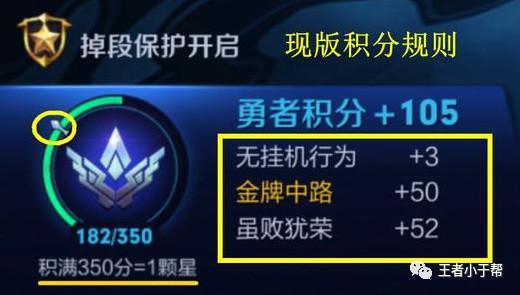 大家都知道现版本积分规则是达到一定分数后开启掉段保护,同时积满积分还会增加一颗星,为了减少玩家打排位时掉段和降星的压力,此次更新后勇者积分规则将迎来重大调整,即勇者积分达到该段位上限时在升星的同时不再扣除全部积分,而是仅消耗该段位掉星保护积分用来增加一颗星,而如果排位赛失败同样是扣除该段位的掉星保护积分用来抵消扣星,比如至尊星耀段位的勇者积分上限是1000分,而掉星保护抵扣积分只需250分,如此不仅提升了上分速度,还极大降低了玩家排位压力!