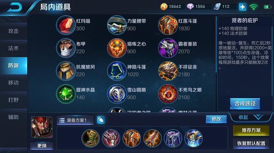 打野:巡守利斧(巨人之握)+疾步之靴+无尽战刃+反伤刺甲+魔女斗篷+宗师之力(贤者的庇护)