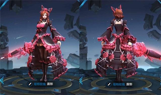 哥特玫瑰模型:主要也是色泽上更偏暖一些,而且色彩更加亮丽,装饰和武器略有改动。