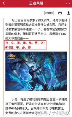 王者荣耀6.16端午新福利,永久英雄免费拿