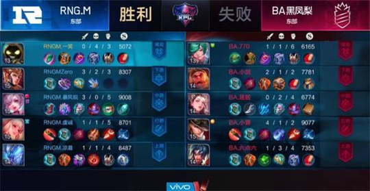王者荣耀KPL:BA黑凤梨一往直前4:1击败RNGM,率先晋级东部决赛