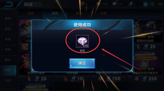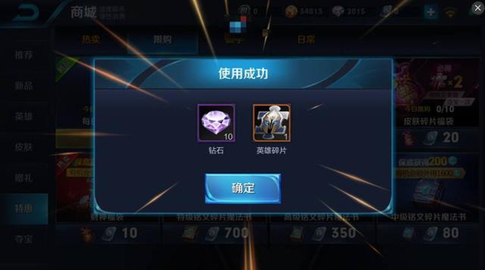 该玩家在参加这个活动中,依旧能够开出额外的奖励,除了必得的10钻石奖励外,还能够开出额外的英雄碎片奖励。