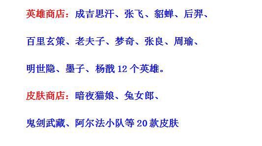 碎片商店开启更新,在英雄商店中,除了成吉思汗、百里玄策、墨子不要兑换之外,其他英雄都可以兑换,成吉思汗和墨子可以在上述活动中免费获得,百里玄策被削之后,排位中不再强势。而皮肤碎片商店就很普通了,就一个兔女郎还可以兑换,其他288皮肤没有公布,更新后在游戏内查看。