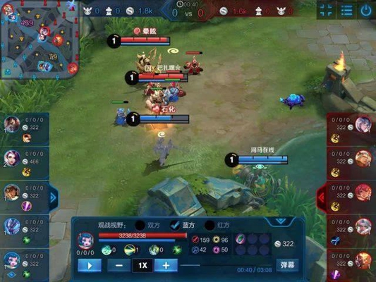 第一波抓上单没成功后对面射辅仗着前期的强势期来偷蓝,我在蓝区草丛蹲守发现了对方动向,上单和打野赶来,我先躲开在远处观望,支援赶到后我方狼狗拿着红先去追后羿后羿交闪现逃了,钟石化被我的二技能弹跳蓝buff连控两次后交出一血。