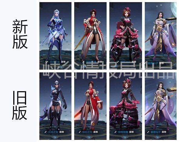 再来看上次优化完的对比图,除了原皮颜值在线以外集体变胖,站姿也很奇怪,特别是绯红之刃,看起来简直是强行把腿岔到最大,风尘气十足……