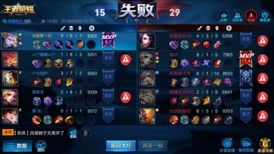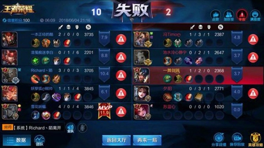 从上图可以看出,黄忠这场排位应该是参加的路人局,但是其发挥的还是很不错的,但是队友就不想说了,最少的死亡次数都是8次以上,但是在游戏结束后他竟然被举报了?而且还是成功的,这是什么原因?难道是因为死亡一次太多了吗?
