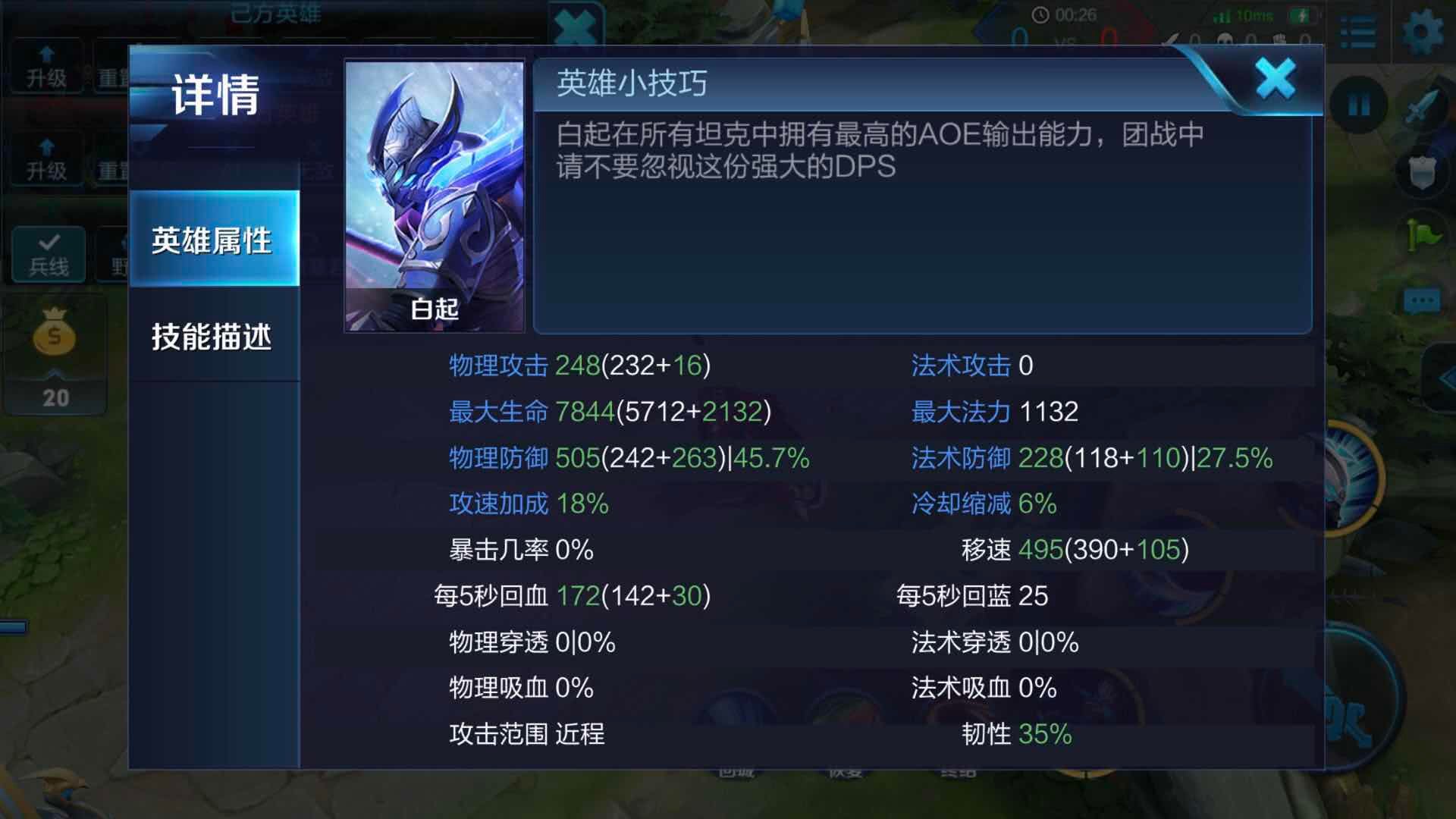 一位9级发育良好的白起,能拥有505点物理防御,45.7%物理免伤。