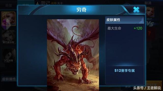 穷奇。S12赛季奖励皮肤。也是第一款可以免费获得的皮肤。典韦的穷奇已经不是什么新料了。上线时间就是新赛季而已。不过唯一值得期待的就是,穷奇可是神兽中为数不多有翅膀的陆行生物。不知道典韦的新皮肤会不会保留翅膀的元素呢。