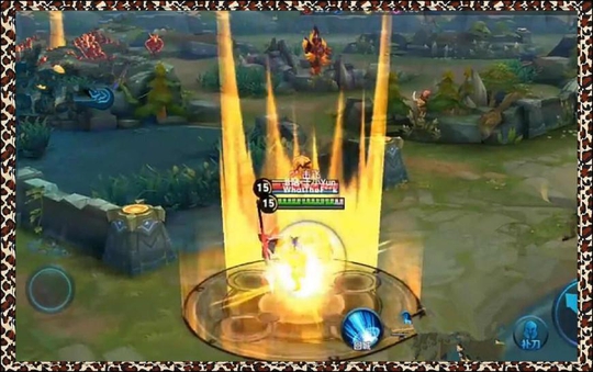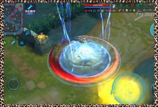 如果你觉得上面那个太简单的话,那么下面第2个技能对比上一个技能就有点难度了,英雄释放技能的时候在身体周围出现了两个圆圈,里面那个是蓝白色的光,外面的则是红色的光,同时天上还有好几道闪电击落,画面挺华丽的,你知道这是峡谷的哪一个英雄吗?