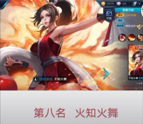 作为一个SNK英雄,不知火舞算是其中最热门一位了。不知火舞的消耗能力绝对是她最强势的一点,但灵活的位移技能也是让敌方最头疼的一点。跟不知火舞对线,也许你会打出一定的经济优势,但你想击杀对方,这几乎是不可能的。即便是你的队友来帮你抓她,也未必能成功,如果一定要不知火舞的话,那只有拼命骗她技能了。