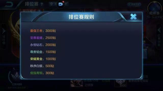 赛季奖励钻石界面在排位赛中就可以查询到,每个玩家可获得的钻石在自己排位赛界面的右下角,白银以上每跨过一个大的段位都可以多获得500颗钻石奖励,最强王者可以拿到3000颗钻石奖励,荣耀王者跟最强王者的奖励是一样的。需要注意的一点就是,段位一定要在赛季结算之前就爬上去,因为赛季更新的不确定性,暂时还没有定下最后日期,建议20号之前完成上分动作,20号之后随时都有可能进行大更。