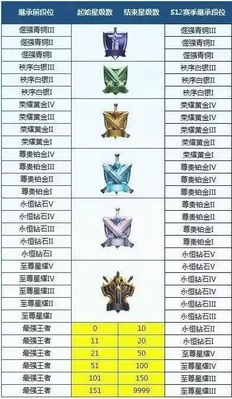 本赛季的段位继承表跟上个赛季的没有区别,依然是按照上个赛季的段位继承,大部分玩家会重回钻石级以下,而星耀玩家则是可以冲到钻石以上,不过有一点要提醒大家的就是,赛季之初上分非常困难,水平相差较大的玩家也会在同一段位,所以不建议赛季初上分,可以等两个周再开始上分,还有一点是赛季末掉分的玩家比较多,上分最好开车队!