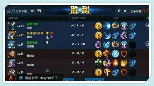 下面是英雄在战场经历了一番精彩的斗争后比赛结束的画面,我们看到跟我们现在的比赛结果画面完全不一样,以前都是一排,现在都分开了,是不是发现英雄的装备一个都不认识?现在的图标都已经改版过了。