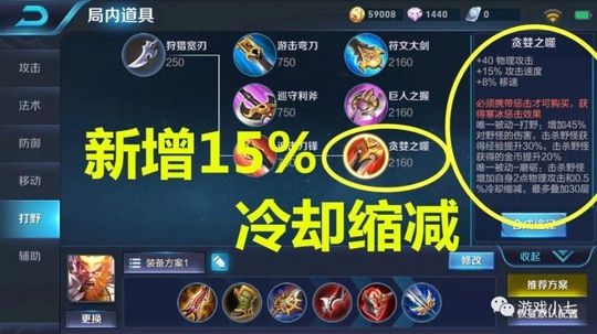 打野装备,贪婪之噬,物理攻击力砍掉了20点,新增8%移动速度,每击杀一个野怪获得额外冷却缩减:0.5%,这一条有点厉害了。也就是说,每击杀一只野怪给0.5冷却缩减,最高叠加到30层,也就是15%的冷却缩减,哈哈,有点厉害,不过符文大剑和巨人之握可没这个待遇哦,另外你们要搞清楚,正式服上线以后,打野装只有带惩击的召唤师才可以购买。
