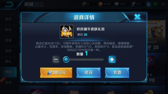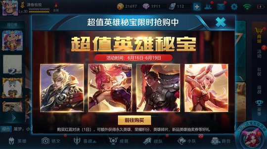 英雄秘宝再次上架,20点券参与一次,抽到永久英雄的概率为2%,分别是花木兰、公孙离、吕布、嬴政。