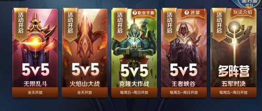 除此只为,现在王者荣耀的六个娱乐模式人气也是没用曾经那么火爆了,无限乱斗、火焰山大战、克隆大作战、迷雾模式、多阵营五军对决、契约之战如今匹配也需要很长的时间才能匹配到人,如果遇见没有进入的,要等尽5分钟才能匹配到人,不像曾经那种火爆到几秒钟就能匹配到人。