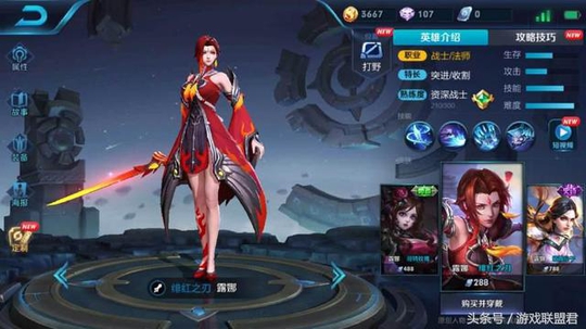绯红之刃,老露娜的288皮肤,跟很多伴生皮相比,此款皮肤带有特效,还是比较良心的。相比于旧的海报原画,新露娜的额头上双眉中间多了一个绯红印记,而且眼神变得更加犀利,更让人感受到了战士定位的锋利。建模方面与原画出场方式一致,更加英姿飒爽。