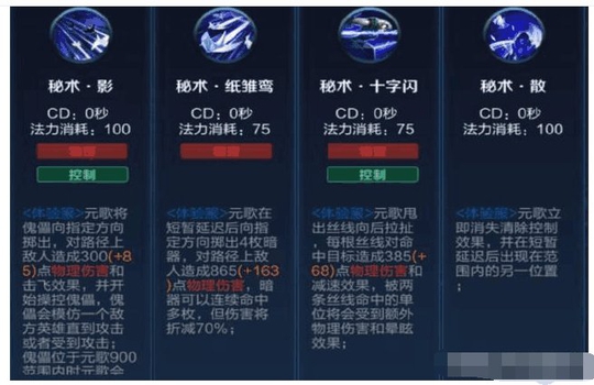 简单来说,一技能是用来召出和召回傀儡的;无傀儡状态下的二、三技能是元歌主要的两个POKE技能,四技能则自带净化效果且还可以作为保命技能,有2s内的无敌不可选中状态。