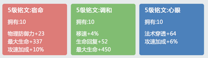 10个宿命带来的是物防+最大生命+攻速加成,物防和最大生命的作用不必多说,而攻速加成是专门服务于刘邦的被动技能,刘邦第三次普通攻击将附带最大生命值4-8%的法术伤害。