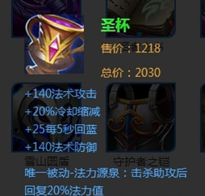 圣杯:这件装备在刚开始被官方推出时,玩家还是比较喜欢的,但是有的玩家前期就会拿出这件装备,但是,小编觉得,最好还是不要前期出,因为他的作用并没有想象的那么大!